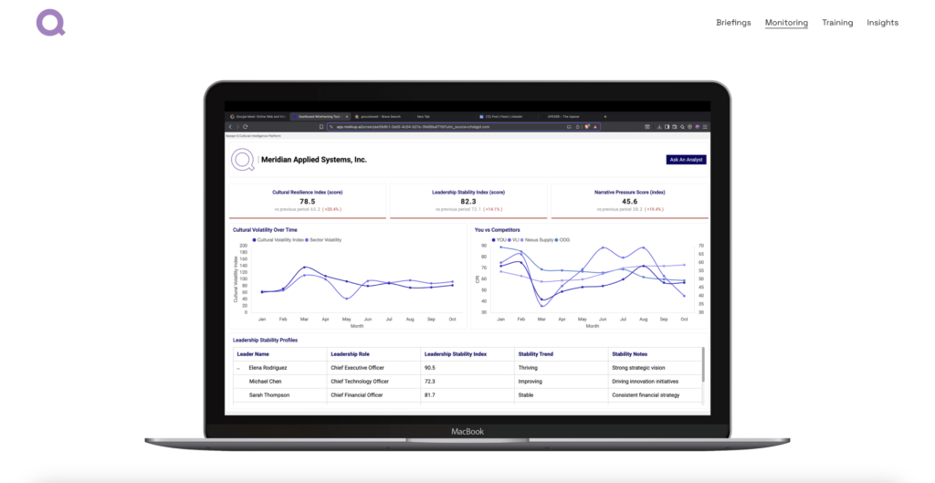 Cultural Resilience is the alignment between a brand’s actions, values, and audience expectations. Brands with high Cultural Resilience build trust, loyalty, and long-term growth, while those without it often collapse despite short-term success. Cultural Physics shows that cultural alignment often predicts future performance better than financial metrics alone.